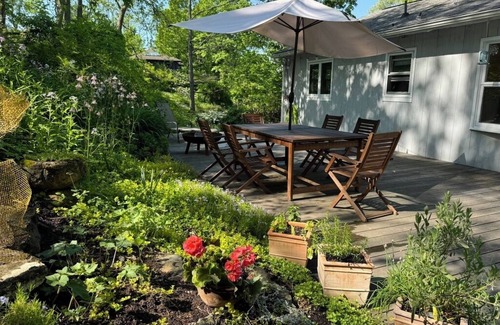 Nestled in a picturesque hamlet, this charming two-bedroom, one-bathroom cottage offers a serene escape into nature. Inside, you’ll find an inviting eat-in kitchen, a cozy living room, and a sunroom—all designed for gathering while embracing the outdoor views. Handmade furniture and original artwork add a unique, personal touch throughout the home. Step outside onto two spacious decks, perfect for al fresco dining and grilling. The surrounding private gardens and wildlife are nothing short of magical.