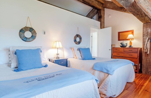 Known locally as "Big Daddy," this 4-bed, 4.5-bath home offers stunning ocean vistas from every room. Perched atop a WWII bunker, the house boasts a light-filled interior with whitewashed walls and wide-plank pine floors, exuding warmth. Enjoy the panoramic views of the ocean on the wrap-around porch or take a swim in the private pool. Beyond a vacation rental, this is an unforgettable island getaway just outside of Portland!