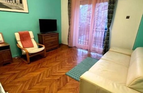 The apartment is 30 square meters and has a comfortable, large, bright room with a tiny balcony on the first floor, newly installed super quiet and super cool air conditioning.