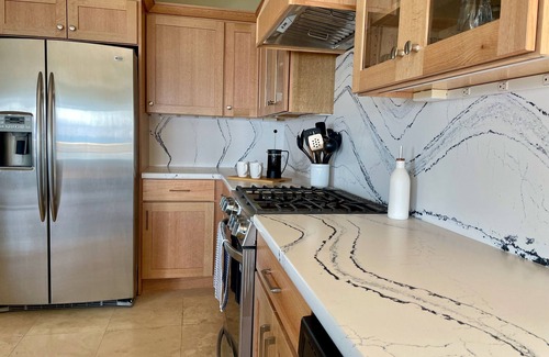 And the indoors are as inviting as the outside! This newly-remodeled home has two spacious bedrooms (plus a queen-sized pullout couch), two bathrooms, a fully-stocked kitchen, a separate TV nook, and two new gas fireplaces.