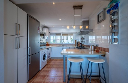 Beautiful and spacious apartment-penthouse located in the area of Playamar ten minutes from the airport by car since it has very good road communication very close to motorways and motorways to all directions, Malaga 15 minutes drive, Golf Parador and school Golf nearby, supermarkets (Lidl and Aldi) 1 minute walk away, several shopping centers nearby Private parking, elevator, enclosed grounds, newly renovated private pool, indoor bar, train station and nearby taxi. Beach about 600 meters.