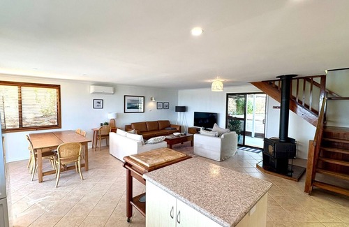 Spacious Downstairs Living - Relax in the comfortable loungeroom, perfect for putting your feet up and unwinding after a day spent sightseeing or having fun at the beach. Experience the warmth of the woodfire heater on cool evenings or the cool central air-conditioning on warm summer days.