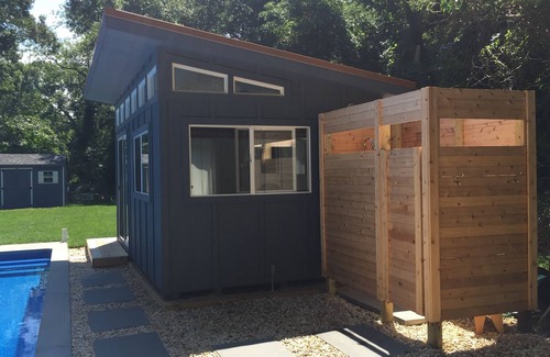 Enjoy your summer in mid-century style in this fun 3 bedroom/ 2 bath beach cottage in the famous artist community of Springs, East Hampton. House is just-1/2 mile from the private Clearwater Beach Association with its own beautiful bay beach, playground, picnic tables and parking - all just minutes from East Hampton & Amagansett Villages and the Ocean Beaches. The house interior is freshly painted and decorated with stylish art, all new furniture, and refinished hardwood floors,. The backyard sports rustic landscaping, new patios, heated saltwater pool, outdoor shower, pool house and fire pit for you and your guests to enjoy. Your easy, breezy Hamptons summer awaits!