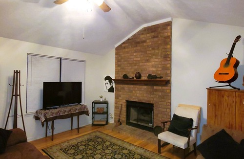 The Nashville Music Hangout is a cozy Midterm Rental at the dead-end of the street just 5 minutes from I-40 and 9 miles from downtown Nashville's music scene. You'll have the entire main story which features a comfy living room and a guitar for you to pass around the room. Walk a half mile to Percy Priest Lake & Marina where you can rent a boat, jet ski, or enjoy dinner and live music at Shipwreck Cove Restaurant & Bar. It's the perfect home-away-from-home for work or play while you experience Nashville, Tennessee. (basement/garage not included-the owners stay there when they are in town).