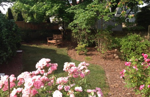 Lovely fenced yard and gardens with gas grill. Perfect for rest and entertainment.