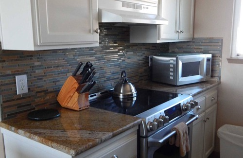 Another beautiful newly remodeled bathroom with a large shower is located on the upper level as well as a convenient full-size washer and dryer.