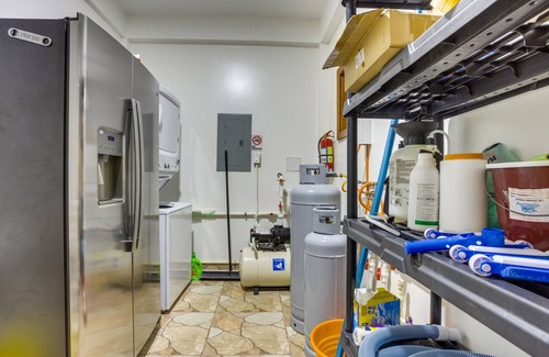 NOTE: This lower unit consists of a 1 bedroom, 1 bath unit with full kitchen, living and dining areas, separate dedicated laundry and access to a shared seaside saline pool with a poolside bath and outdoor shower. The solid concrete construction ensures minimal sound transfer between upper and lower units, and the property consists of only two units in total. The king size bed can be separated into two XL twins upon request. Bikes, paddle boards, snorkel gear and lounge chairs are shared items.