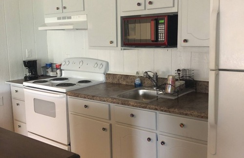This property has been renovated and ideal for a couple or a small family. It has a queen bed(sheets are NOT provided), and pull out cot. The Lucky Buc adjoins the Buccaneer. There is a privacy fence separating the two, but a gate to open up if renting The Buccaneer with family or friends. We are located 0.1 mile from Zillie's, 0.3 mile from the Community Square on HWY 12 and 2.1 miles from the lifeguard beach.