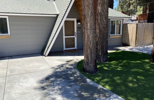 This pet friendly cabin offers a fenced back yard and space for your dogs to run. Newly remodeled Sierra style cabin perfect for couples or single family getaways. Don't worry about parking or steps. The single story fully open floor plan allows you to cook, socialize, watch tv or the fireplace all in one room. The ideal location near the lake, ski slopes, snow play, The Village and hiking/biking. Home and fenced yard are ready for your puppy. Star gaze from the backyard and barbecue on the back patio or enjoy the fire pit with a glass of wine or ale. You may also enjoy yoga in the clean mountain air and feeding the local blue jays.