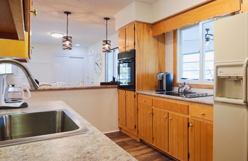 AMENITIES: Outdoor shower, Wi-Fi, washer, dryer, and electronic keypad system for easy check-in and check-out. Patio with seating, fireplace, and sunroom.