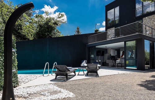 The villa can accommodate up to 8 people in 3 bedrooms.