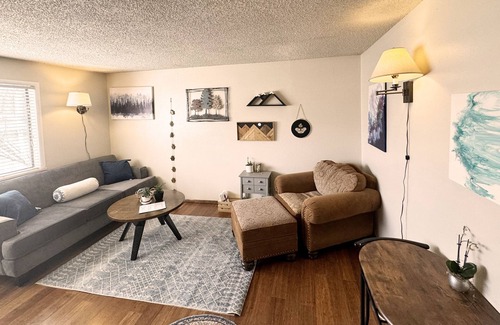 Your side of the duplex has one bedroom with a queen bed. A bathroom with bath and shower, washer and dryer, and a cozy living room. There's a fully fenced backyard for the dogs to enjoy.