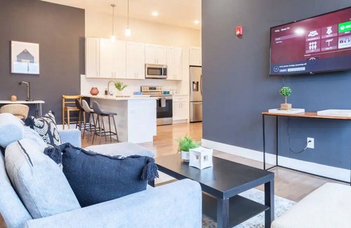Experience a haven of modern serenity in Point Breeze, Philadelphia, at our 2-BR Airbnb Oasis. Luxuriate in the comfort of our two-bedroom retreat with queen beds, a well-equipped kitchen, and in-suite laundry. Immerse yourself in the contemporary charm of stainless steel appliances, expansive windows, and deluxe finishes. Your ease is ensured with amenities like parking, a smart TV, and a hassle-free self-check-in process. Unwind in urban luxury at the heart of Point Breeze