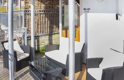 Shower Room: Cubicle Shower, Heated Towel Rail, Toilet. Gas underfloor central heating, electricity, bed linen, towels and Wi-Fi included. Welcome pack. Terrace with garden furniture. Hot tub for 4 (private). Private parking for 1 car. No smoking.. Nestled in a hillside location, surrounded by scenic woodland with panoramic views overlooking the world-famous Pendine Sands, this executive apartment has something to offer for everyone whatever the adventure!