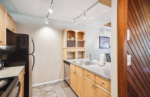 Pinnacle F08 is a beautifully decorated, newly renovated two-bedroom, two-bathroom unit. This condominium can sleep up to 6 people and is located .05 miles from the Killington Ski Resort. The kitchen has an open feel and has been fully remodeled to feature a pull-up stool bar area and is well equipped including a dishwasher, a full-size refrigerator, and a full-size electric oven/stove drip coffee maker and microwave included. This two-bedroom unit has a single Queen-sized bed in the master bedroom. Two twin beds in the adjacent bedroom and a pull-out sofa in the living room. The bathrooms have been newly renovated from top to bottom. The living room features a tiled fireplace combined with a dining area and seating for four people. The living room gives access to a small balcony to enjoy the Killington Mountain fresh air. For entertainment, each room has a flat-panel tv and Wi-Fi internet connection. A compact washer and dryer in stack formation are included in the unit as well. Complementary parking is available onsite. The outdoor pool, hot tub, and, tennis courts are open during summer only. (please note this unit has no air conditioning)