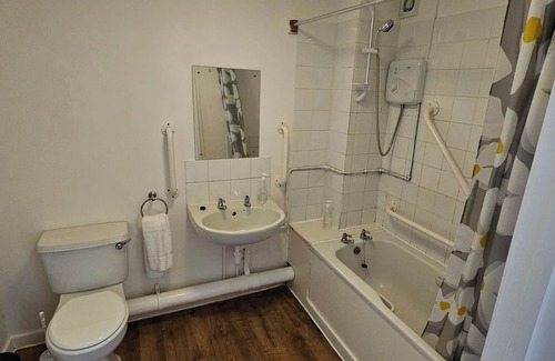 You can also enjoy the convenience of a full private bathroom at Plas Bellin Apartments. It comes equipped with a shower over a bathtub.