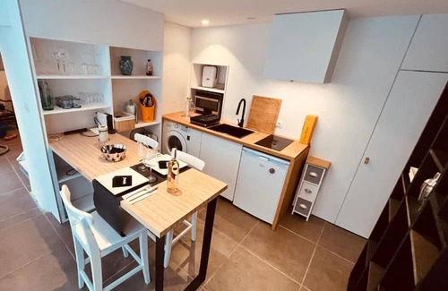 Welcome to la Maison Mythique ! This house, located in Andenne, offers ultimate comfort with a king-size bed and a cozy atmosphere thanks to its pellet stove. The kitchen is fully equipped. Enjoy a dedicated workspace and relax in front of the TV with wifi and Netflix access. The bathroom features a shower. Fall in love with La maison Mythique and enjoy the magic it has to offer.