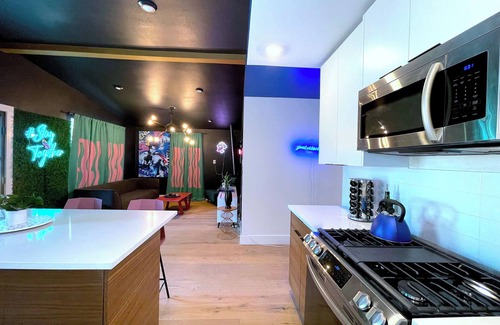 We all know this location is freaking sick. But we're not shallow - we know it's what's on the inside that counts. So we filled this 24-guest capacity 2-property complex with all the selfie backdrops you can handle. Each room is filled with cool art and unique lighting that will make your pics pop! Please note - we're not responsible for maxing out your camera storage.