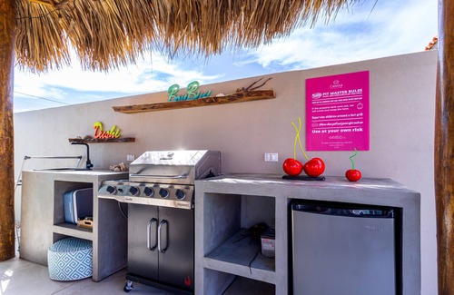 The highlight of this remarkable home is the large pool and palapa area, perfect for soaking up the sun or enjoying a refreshing swim. The outdoor dining area and grill provide an ideal setting for hosting memorable BBQs with family and friends. Whether you're dining al fresco or lounging in the shade of the palapa, you'll relish in the outdoor living space.