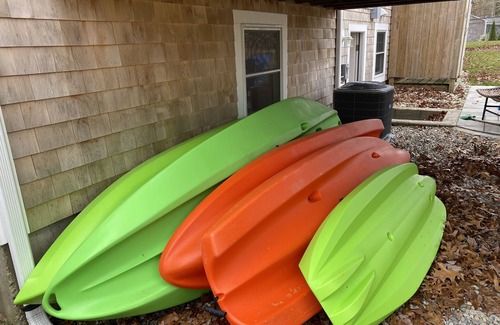 With 3 bedrooms upstairs and 2 bedrooms downstairs and each floor having its own common area with t.v., and access to outside gives privacy to either one family, or for two families sharing the home. Use of our kayaks included to enjoy a leisurely paddle around Popponesset Island, or simply to paddle in the calm water in the spit. A 5 minute walk to the community center to play basketball, baseball, or for little ones to enjoy the playground, and a 10 minute walk to the neighborhood fishing pond, and a 15 minute easy walk to the Marketplace to enjoy restaurants, cafes, outdoor entertainment, mini golf, and quaint shopping.