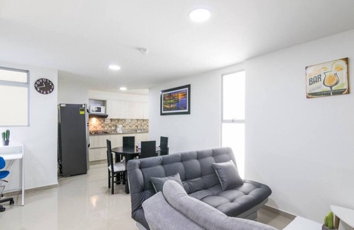 Modern and spacious apartment with Two bedrooms, one bathroom, living room, dining area, fully equipped kitchen, reliable wifi, tv cable and everything you need for a comfortable and pleasant stay. You can also enjoy a pleasant terrace overlooking the city. Located very close to Sabaneta's park. I guarantee you the best location in Sabaneta! Upstairs in the building Rooftop you will find a jacuzzi where you can relax and enjoy a good view with your family or friends. You can walk to restaurants and supermarkets near.