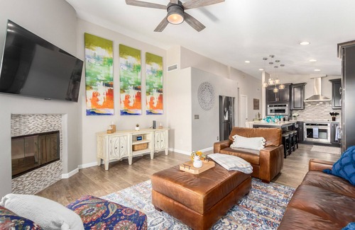 Enter our Desert Ridge Gem! Our beautiful kitchen offers KitchenAid stainless steel appliances (2 Ovens), cooking utensils, pots/pans, dinnerware, Keurig, toaster, and a blender. Bedrooms are fully furnished with linens, extra pillows, and blankets for your comfort. Bathrooms are stocked with towels, toilet paper, shampoo, conditioner, body wash, & lotion. Toilet paper, paper towels, laundry, and dish detergent & trash bags will be available for your stay.
