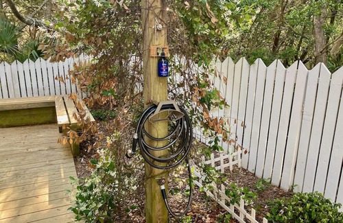 Walk through the gated and recently expanded fenced area near the front door and you'll see an outdoor shower and wash station to help keep the sand out of the house. We even include dog shampoo if you need to give your 4-legged friend a bath.