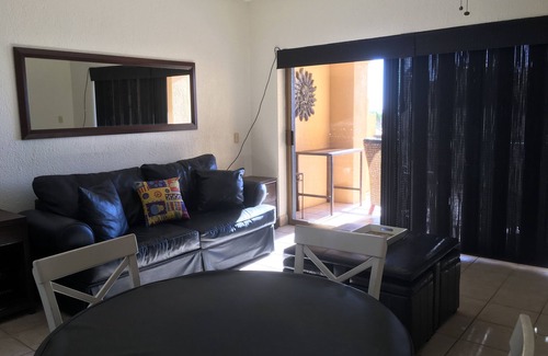 Beautiful one bedroom one bathroom condo at Princesa de Peñasco, on the third floor, it accommodates 4 guest. Enjoy the beauty of the Mar de Cortez from the balcony or go to the beach for a piña colada from one of the many vendors or a banana boat ride. Princesa de Peñasco has a restaurant, Colins Cantina, Spa and a small but well stock convenience store. We manage three condos on the same building for larger groups.