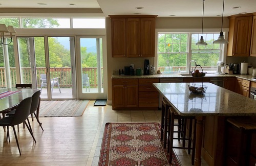 - All of back-facing windows and the expansive deck enjoy gorgeous mountain views, including incredible sunsets. We have furnished the sun porch and deck so that you can enjoy as much of the beautiful scenery as possible with tables and chairs for eating and lounging.