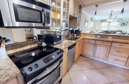 - Fully equipped kitchen with stainless appliances and natural stone countertops