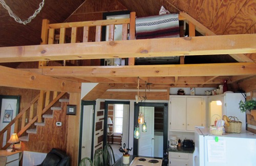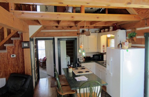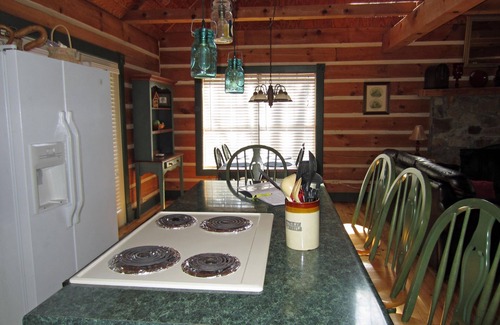 The kitchen has everything you need for wonderful family meals. Full sized stove, oven and refrigerator. We have also made available a coffee maker, toaster, hot air popper, microwave, and crock pot slow cooker. The Hemlock also has a washer and dryer for your convenience, and a full and a half bath. No reason to rough it here - it has central air and heat in combination with a propane fireplace (Nov 1-April 15) for ambiance - when it may be chilly.