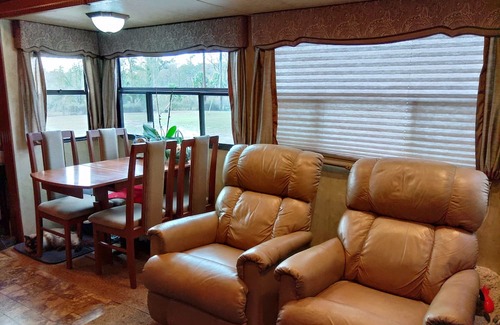 upscale fifth wheel on private Horse Farm. property is very secluded surrounded by horses and cows with beautiful sunsets.