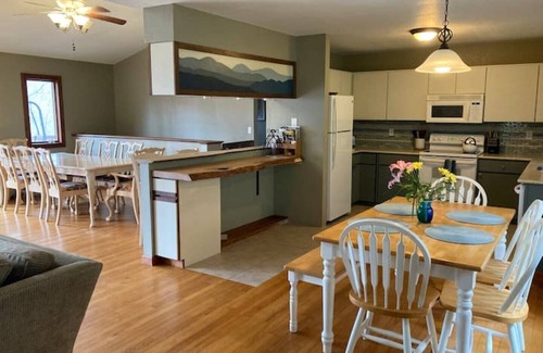 The house is located 2 miles off a main highway. There is 0.2 miles of gravel road to the house. The driveway is short, steep and paved. 4 wheel drive is NOT needed. In the event of winter weather, this secondary road will not be cleared first. If ice or snow should disrupt your travel plans, we are happy to rebook you for another time.