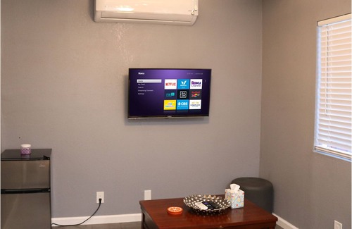 Everything you need for a great stay: a cozy couch to relax on while enjoying Roku TV. A well-equipped kitchenette with all you need to cook up a homemade meal. Behind a sleek barn door, a luxury mattress bed with another TV, plenty closet space and an in-suite bathroom. Washer and dryer combo for your convenience. A private patio to enjoy the beautiful California weather.