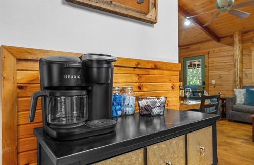 Escape to our charming cabin, perfectly situated just minutes from town yet nestled within a serene wooded resort. This dog-friendly retreat offers a peaceful atmosphere surrounded by nature.