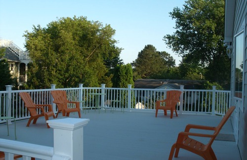 This 4777 square foot beach house with indoor-enclosed-swimming-pool is less than four city blocks from beach & all the restaurants / night life and is half a block away from children’s park at Silver Lake. The house has a family room, game room, billards table, dining room, living room, kitchen, family room with futon, nine bedrooms, sitting room, and six baths plus a large yard with gas grill with two propane tanks including one spare tank.
