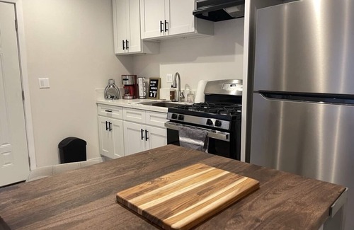 Modern and newly remodeled, 2 bedroom Guest house with everything you need to feel right at home and taken care of. Full kitchen with coffee maker and full size refrigerator and gas oven/stove top. 55 inch Smart TV with Netflix, HULU, Disney + and HBO max for FREE! Outdoor seating area to enjoy coffee or a drink in the California Sunshine.