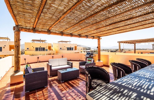 Cerritos Beach Surf Getaway comes with its own private roof deck with a 360° mountain and ocean view. After a day at the beach, enjoy a margarita at the whale watching bar on the upper deck or watch the sun set into the sea.