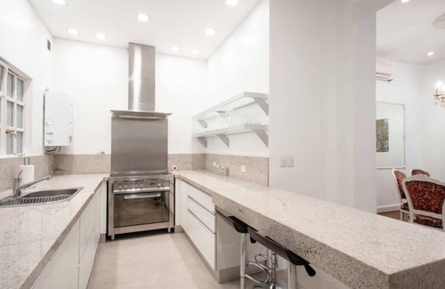 The fully equipped kitchen is designed for culinary indulgence, stocked with everything needed to prepare and savor Argentine cuisine.