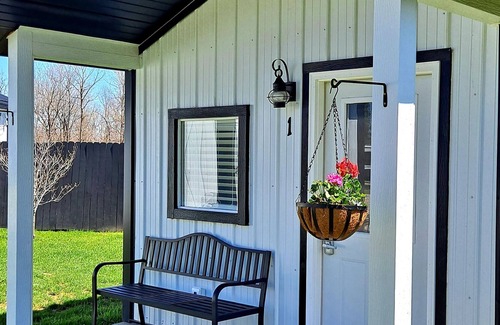 A camping cottage has 1 Queen bed and 1 Full bed, ( linens & towels included), a table & chairs, a small fridge, and a guest controlled thermostat for comfort. Steps away is the beautiful main building with coded bathrooms, a lounge (t.v.& wifi), and a laundry room. The Wi-Fi signal is best in the Lounge, but the Cottage usually has great cell phone service. A camping cottage is a perfect upgrade to tenting or a unique break from standard hotel rooms. No cooking or pets in the cottage. As you drive into Ozark Estates RV Park, there is a Check-In building that will have your map with your last name. It is located inside, on the wall next to the front door. A 24/7 host contact number is provided to text or call for codes or for any assistance. Contact host for approval if more than a 3-night stay is needed! For the safety of all our guests, only registered guests are allowed on property. Check in after 1 PM and check out is 11 AM. Additional fees will be applied for late check out, damage to cottages or any excessive residual odors from smoking.