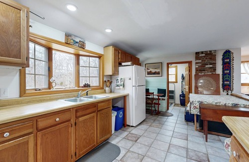 Escape to the charming town of West Tisbury and stay at the delightful C-Haven house for a relaxing and memorable vacation experience. This cozy retreat offers a peaceful setting with a large deck, perfect for enjoying the island breeze and partial shade. Conveniently located near the island bus stop and steps away from the paved bike paths, you'll have easy access to explore all the area offers. Venture out to explore the nearby attractions, such as Rosewater Market, Lighthouse Beach, and the Flying Horses Carousel, all just a short drive away. For outdoor enthusiasts, the Woods Hole Golf Club and Spohr Gardens offer opportunities for golfing and scenic walks in nature. Whether you're interested in bird watching, whale watching, or simply relaxing by the water, there's something for everyone.