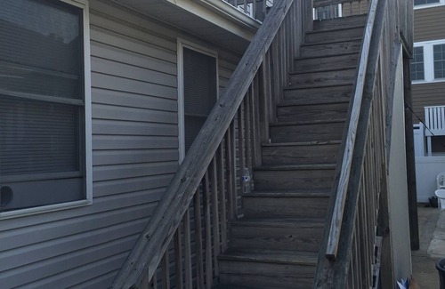 This is a two bedroom second floor condo located in Ocean City. It has a deck with bbq grill, wifi, air conditioning. Additional outside shower. This unit is a short walk to the desirable 14th street boardwalk. Approximately 10 minute walk at a leisure pace. If you're looking for an affordable clean stay in ocean city this is for you. Note this is a "height restricted apartment" as it does have low ceilings. Does have A frame ceiling in Bedrooms so center is 6'3" at the highest point I'm 5'11" and can walk thru. It Can be rented by the week, multiple weeks or for the summer season. Non smoking,Must be over 21 to rent