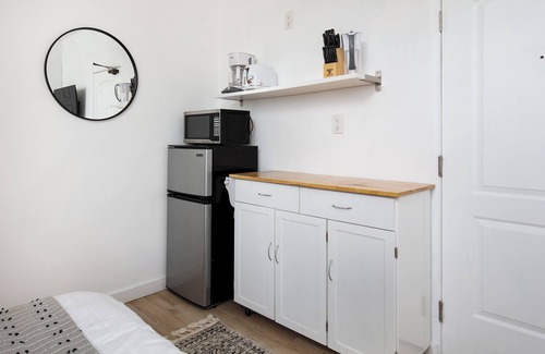 This cozy studio offers a welcoming retreat with a comfortable queen bed, reliable Wi-Fi, and thoughtful amenities like a microwave, mini fridge, toaster, and coffee maker. Perfect for relaxing after a day of exploring, it’s a warm and inviting space that feels like a home away from home.