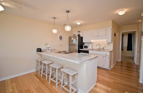 The fully equipped kitchen has everything you could need to enjoy home-cooked meals and snacks like a coffee maker, oven, refrigerator with an attached icemaker, microwave, and dishwasher. As a cool extra, there is a blender available ... hello, beachside margaritas!