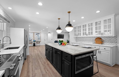 * Two fully stocked kitchens with everything you need to create culinary masterpieces, one on the main level and one on the lower level.