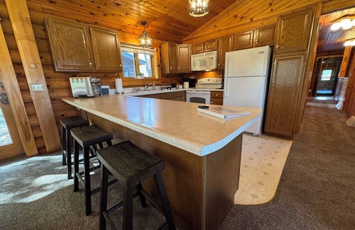 Discover this spacious 2-bedroom, 1.5-bath - ranch style log home featuring an open-concept living area. Enjoy modern amenities such as a cozy sofa sleeper - Smart TVs in the great room and bedrooms, quality Wifi, central air, and a washer/dryer on the main level. The property boasts a large yard, a blacktop road and driveway, and a 3-seasons room on a large deck—perfect for grilling and relaxing. Covered parking in a 2-car attached garage with automatic openers - Enjoy!