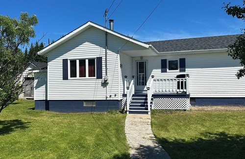 Country home on a treed lot, large mowed yard to play in, only 8km from town. Minutes away from snowmobile, ATV trails, and cross country skiing trails,(depending on the season). For your stay we have queen size beds in both bedrooms, fresh linens on beds, fresh towels provided. The kitchen has all you will need to prepare your meals. Home has wireless internet and basic cable, with a fire stick for additional viewing, two separate patios with BBQ for your leisure, and a fire pit for your peaceful evenings. Parking for two(2) vehicles. For any hunters out there we are located in one of the best locations in MMA 06, come get your moose.
