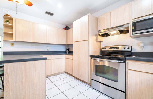 Don’t miss the chance to experience everything this vibrant city has to offer by booking your upcoming stay at Quiet Oak Retreat, a serene 3-bedroom with plenty of exciting features all of its own. Located alongside a picturesque pond in a quiet neighborhood, you can soak in the sounds and views from your screened-in porch as you sip on your fresh cup of morning coffee or an evening cocktail. The large back yard offers plenty of room to stretch your legs and engage in a game or two of catch before dinner.