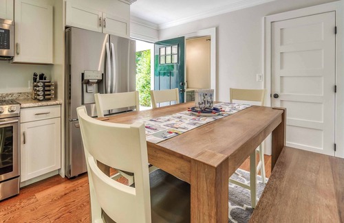 Enjoy a large gourmet kitchen with top-of-the-line LG appliances. The large kitchen island has very comfortable seating is perfect for hanging out with your friends and family while you create a delicious meal. The furnishings are all new and feature carefully selected pieces. The large open first floor also has a dining area for 6, a cozy living room, and a sofa bed for extra guests. The second floor features the master bedroom and a bunk room, both of which share the full bath.