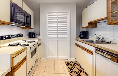Located less than a half-mile from the beach, this cozy, single-level condo is a terrific, family-friendly option for your next visit to North Ocean City. Inside, you'll find a well-equipped galley kitchen with an attached breakfast bar for four and a comfortable, sunlit living area with a leather sofa and a wall-mounted TV with a Fire Stick for streaming all your favorite channels. Outside, dine al fresco on your furnished deck or walk over to the sparkling, shared pool to swim or relax with a good book. Additional amenities include a private washer/dryer, central air conditioning, and complimentary high-speed internet access.